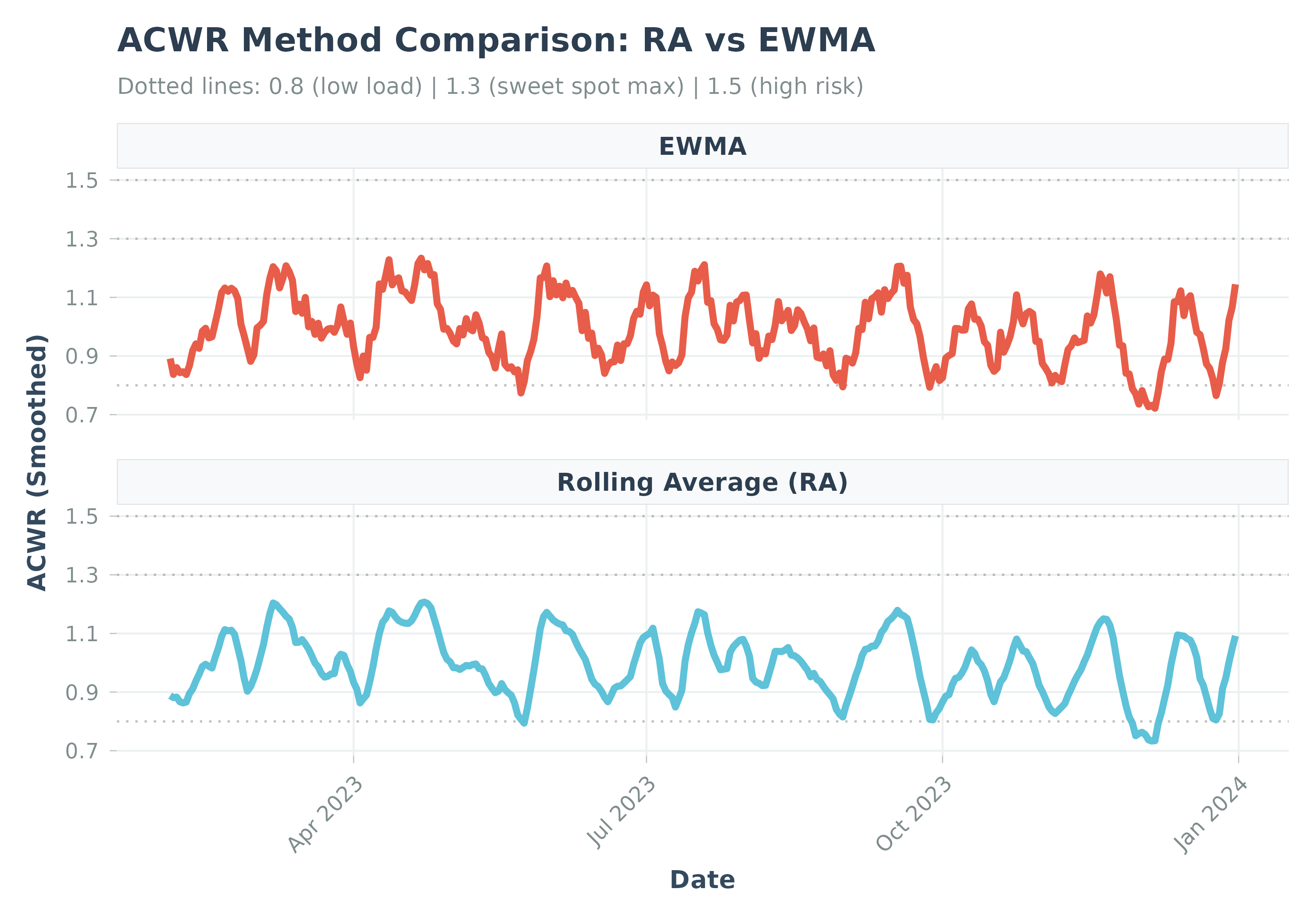 p <- plot_acwr_comparison(acwr_ra, acwr_ewma)