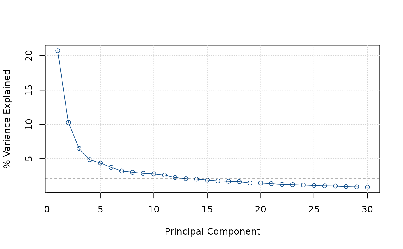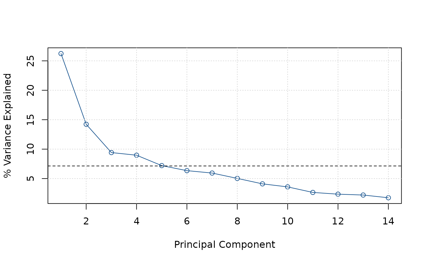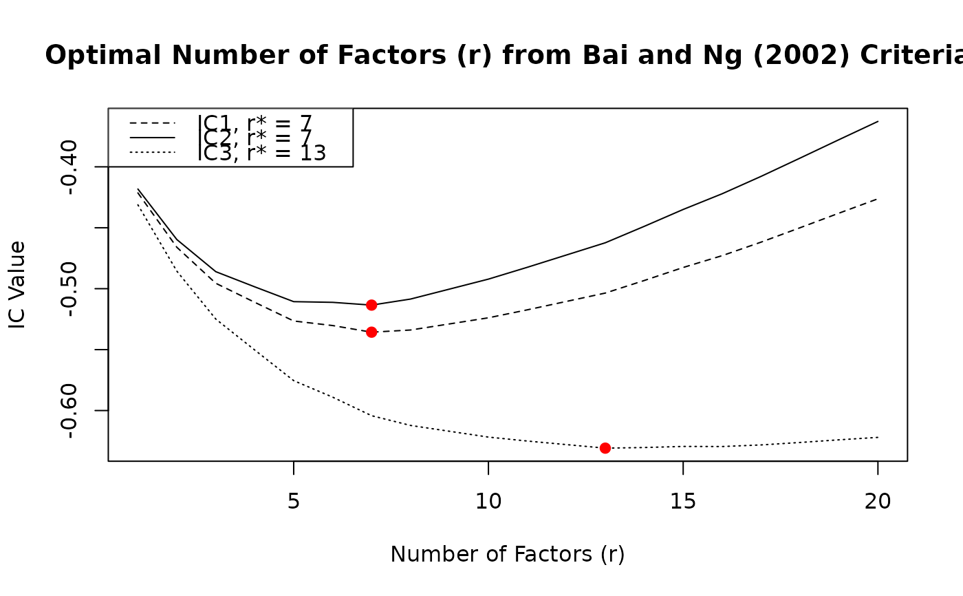 tsnarmimp. It has attributes attached allowing for reconstruction of the original data:"stats"is a \(n \times 5\) matrix of summary statistics of class "qsu"(seeqsu)."missing"is a \(T \times n\) logical matrix indicating missing or infinite values in the original data (which are imputed in X_imp)."attributes"contains the attributesof the original data input."is.list"is a logical value indicating whether the original data input was a list / data frame. eigeneigen(cov(X_imp)).F_pca\(T \times r\) matrix of principal component factor estimates -