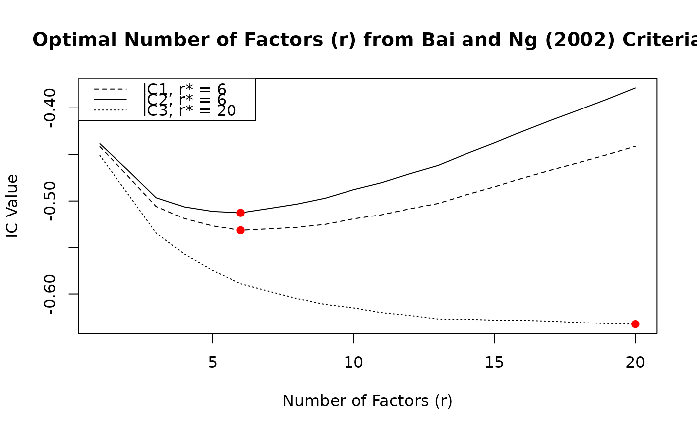 #> Optimal Number of Factors (r) from Bai and Ng (2002) Criteria
