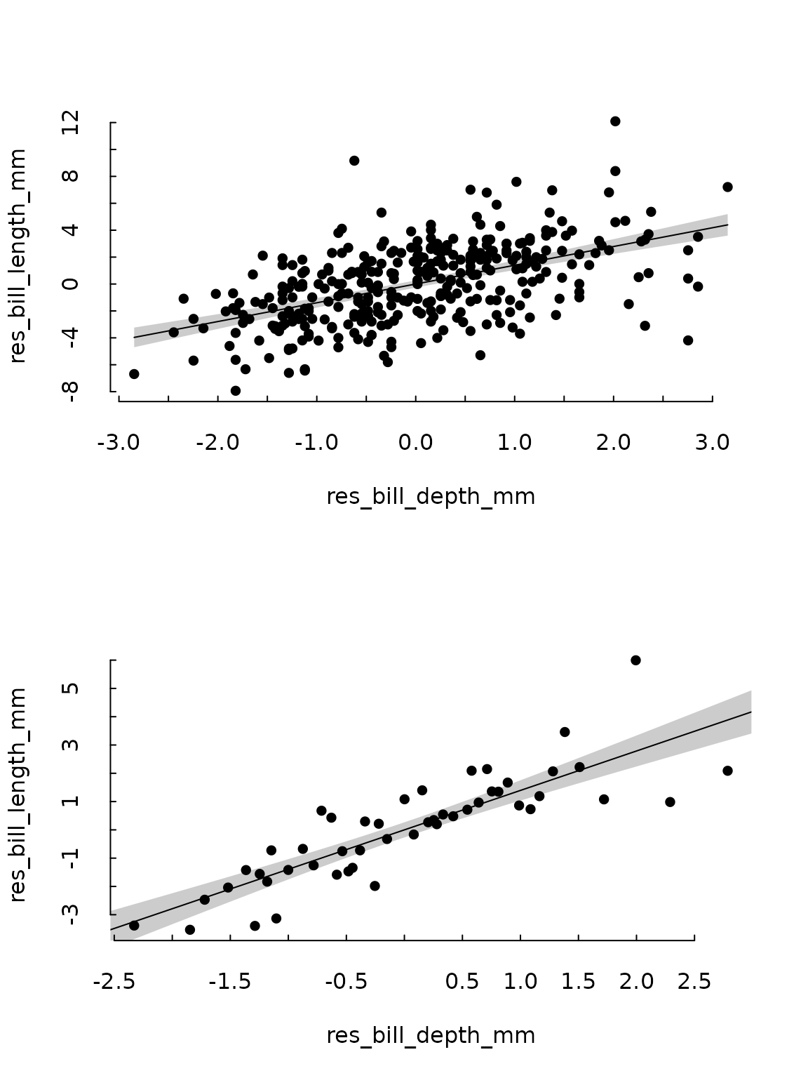 partialling_out(lm(bill_depth_mm ~ poly(bill_length_mm, 2) + species,