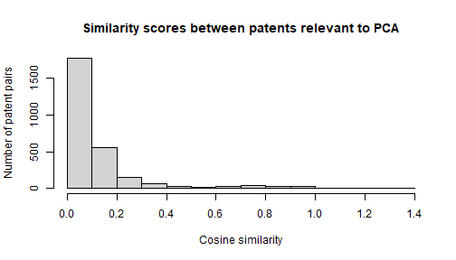 main = "Similarity scores between patents relevant to PCA",