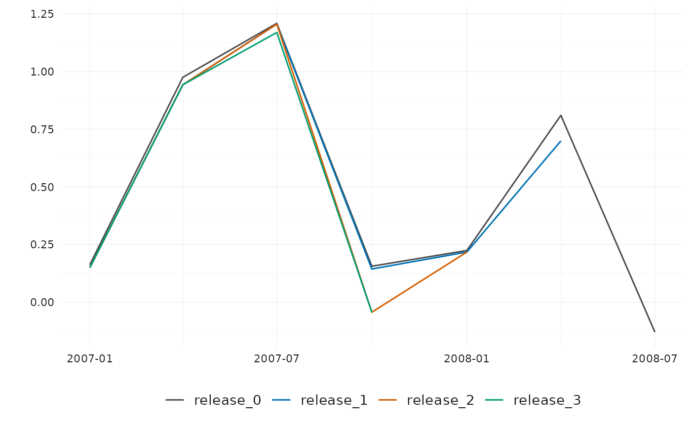 get_revisions(). See vignette Understanding Data Revisions for more details. - Analyze the revisions: